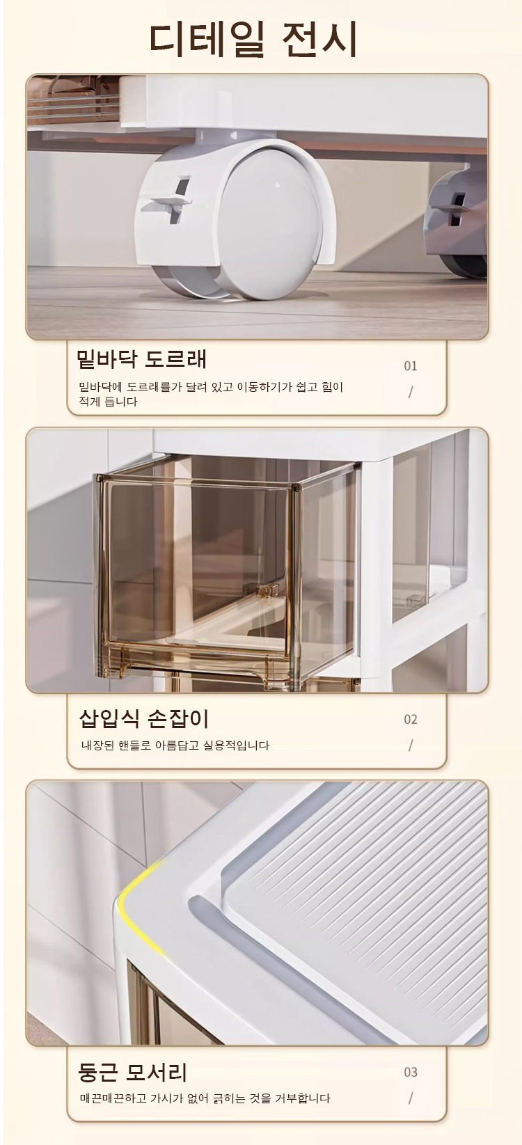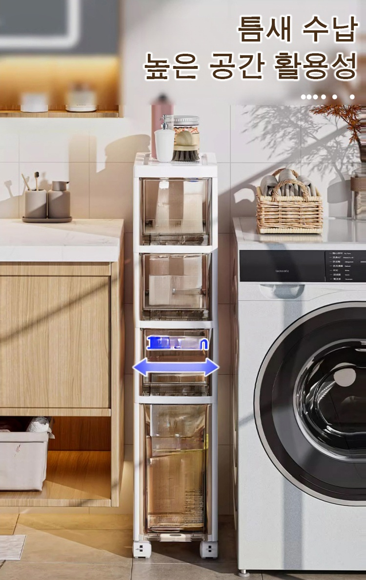 슬림 틈새 이동식 수납장 선반