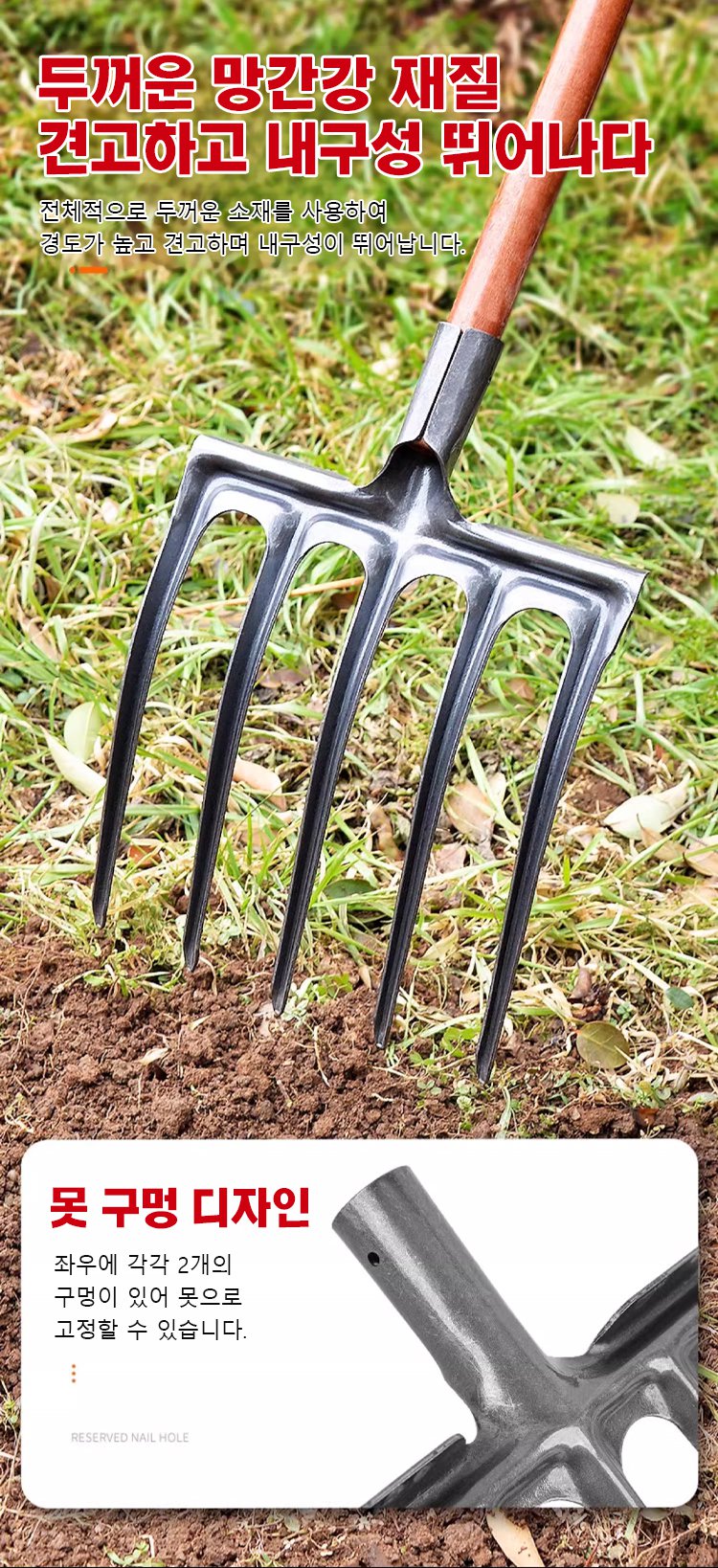 튼튼한 스틸 소재로 오랜 사용이 가능! 농사와 집안일에 최적의 도구입니다.