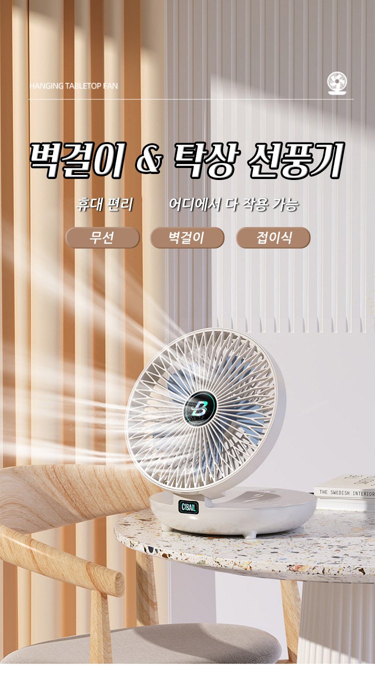【✨️에어컨보다 더 시원함】벽걸이 접이식 선풍기❤️3단계 풍속 조절 가능|내장형 작은 야간 조명|한 번 충전으로 일주일 사용 가능